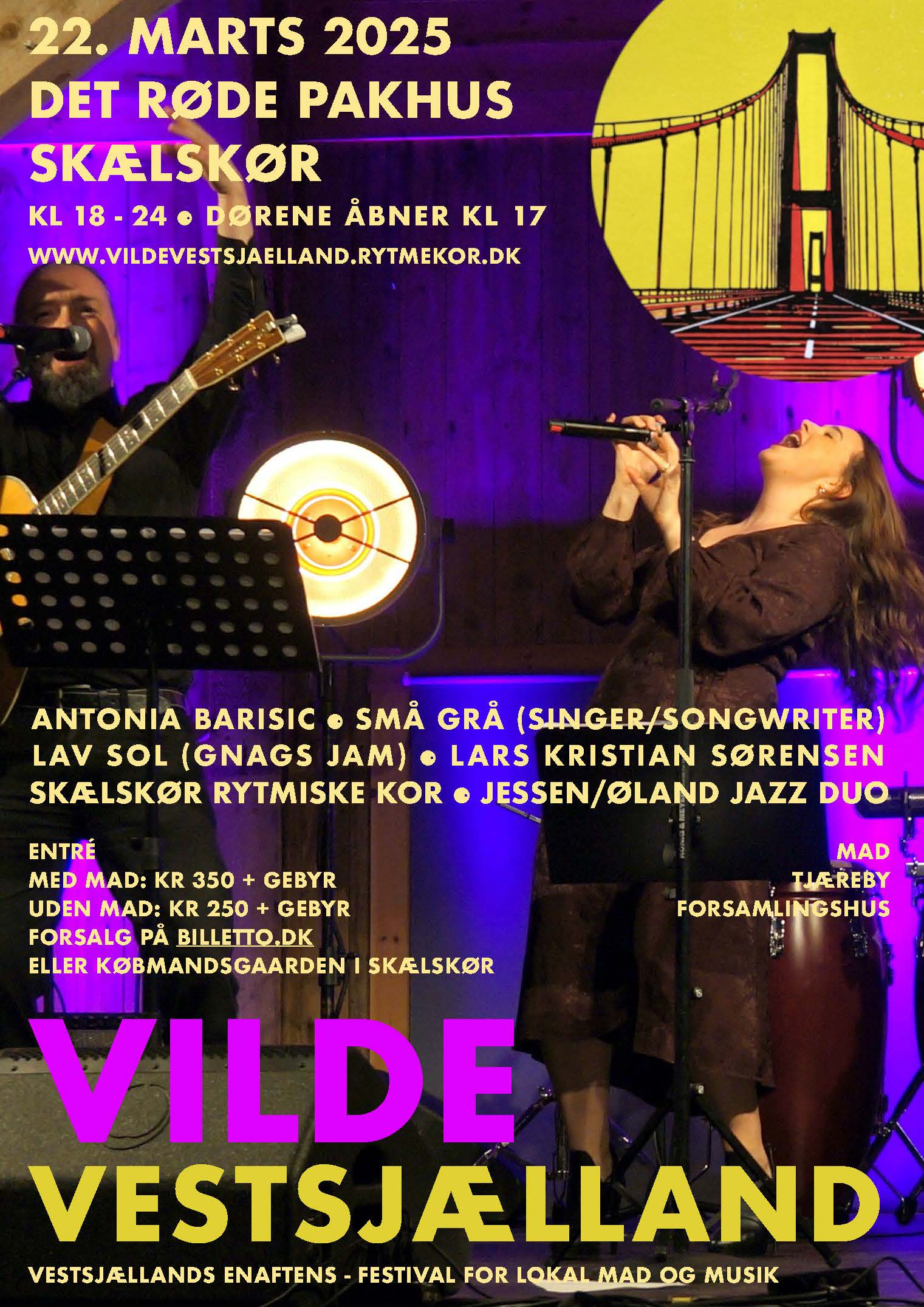 Vilde Vestsjælland Aftenen, hvor Skælskør mødes omkring mad, lokal rytmisk musik, sang og dans. + Tilføj til Google Kalender + iCal / Outlook-eksport Begivenheden er afsluttet. Dato 22. mar 2025 Udløbet! Tidspunkt 17:30 - 23:00 Kategori Dans o.lign. Musik Spisning Arrangør/Brugergruppe Skælskør Rytmiske Kor Del dette arrangement